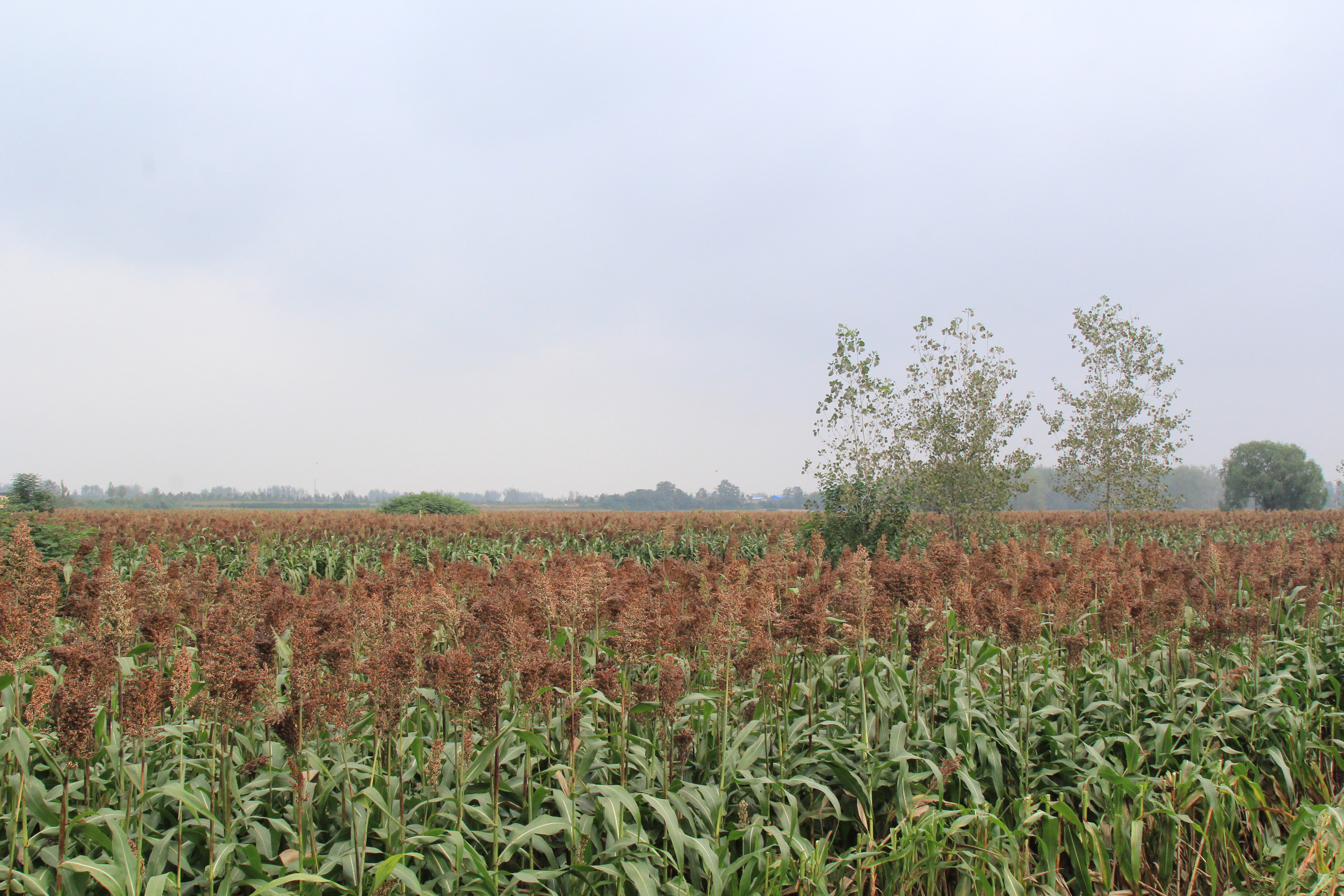 10月14日,正在位于新蔡县汝河旧道的佛阁寺镇梅湾村,旧日的凹地里送来了火红的高粱丰收季。