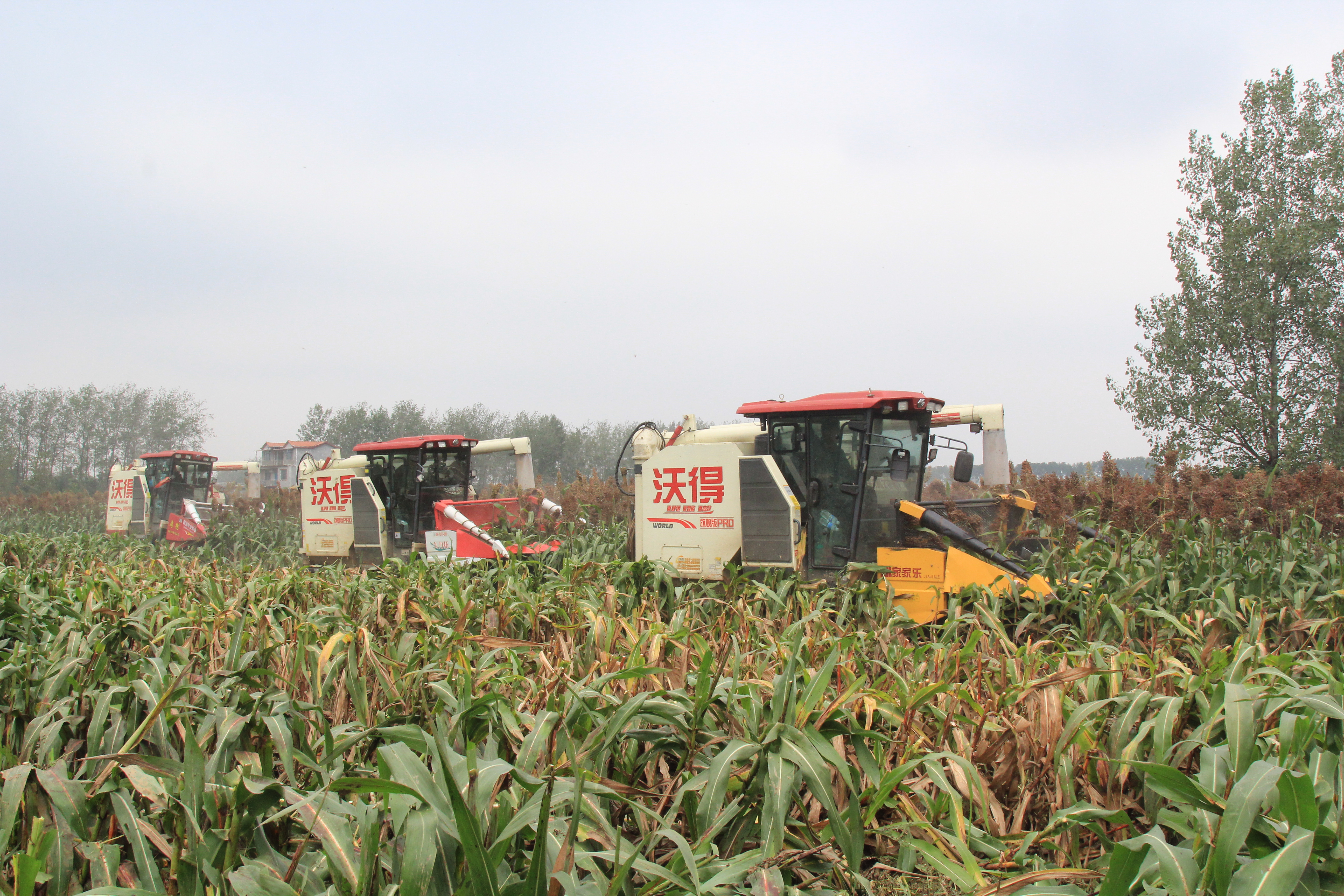 新蔡县平易近耕种植农人专业合做社近千亩连片的高粱种植里,红彤彤、轻飘飘的高粱穗像一串串燃烧的火焰,随风摇摆间勾勒出喜人的丰收图景。伴跟着机械的轰鸣声,6台履带式结合收割机穿越正在泥泞的田间,了高效采收模式。
