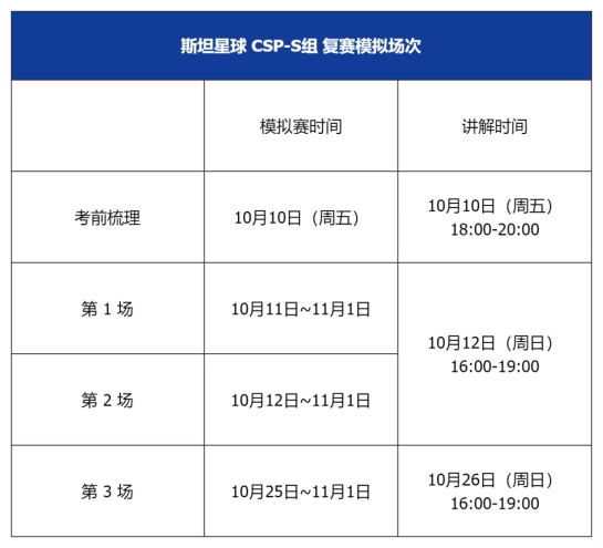 二、复赛冲刺营沉磅上线ming师领航全线月底的 CSP-J/S 复赛倒计时已不到两周,斯坦星球推出【CSP-J/S 复赛全实模仿赛暨名师领航培训】,为想冲分、稳过的量身定制。可接触贴合复赛难度的实和锻炼,焦点大牛教员深度解析,仅需扣除 1 次常规课课时。